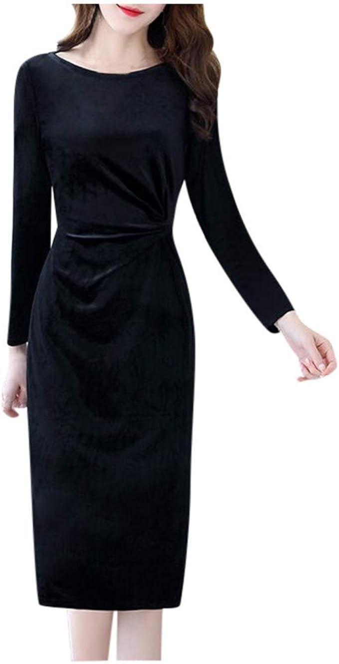 Shenye Damen Cocktailkleid Slim Rundhals Gold Samtkleid Langarm High Waist Midi Kleid Etuikleid Business Kleider Cocktailkleid Bleistiftkleid Knielang Kleider Amazon De Bekleidung