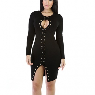 Damenmode Koucla Damen Kleid Etuikleid Langarm Minikleid Shape Optik Kleidung Accessoires Sticisce Sredisce Si