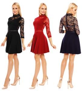 Damenmode Damen Kleid Abendkleid Minikleid Mit Spitze Armeln 36 38 40 42 44 01 Kleidung Accessoires Sticisce Sredisce Si
