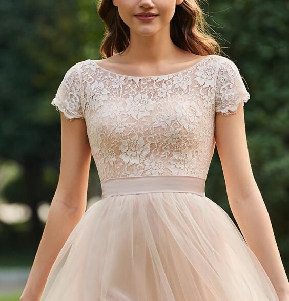 A Linie V Ausschnitt Kurz Hell Champagner Tull Heimkehr Kleid Mit Spitze Armel Kleider Fur Besondere Anlasse 114 99 Simple Dress Com