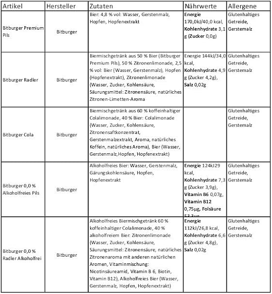 Bitburger Bitburger 0 0 Kalorien Neue Produkte Fddb