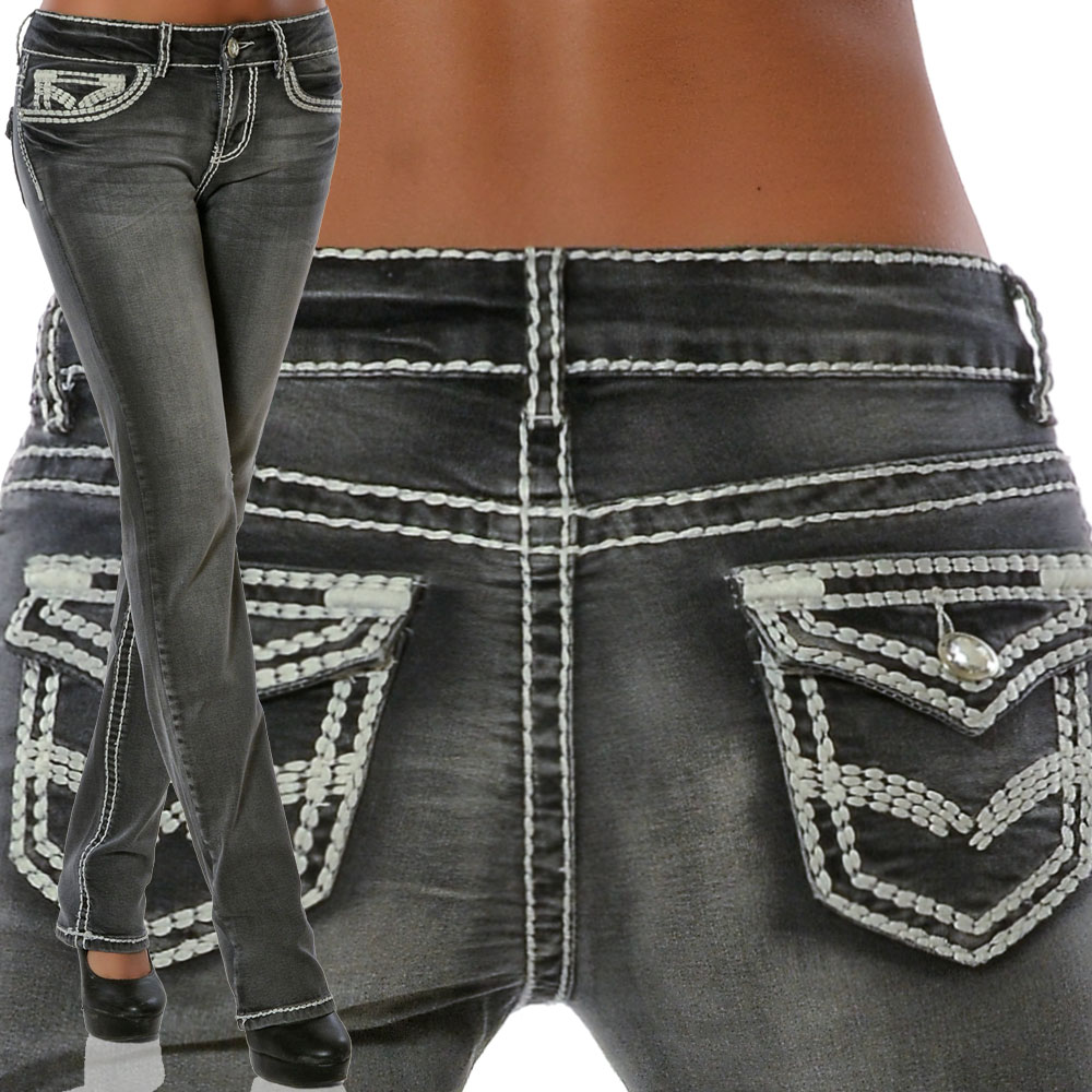 G729 Damen Bootcut Jeans Hose Damenjeans Huftjeans Gerades Bein Dicke Naht Nahte
