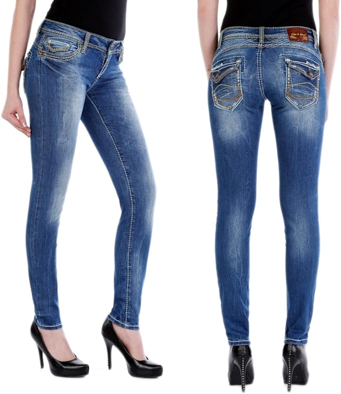 Cipo Baxx Damen Denim Skinny Rohren Jeans Usedlook Dicke Nahte Wd 2 75 48