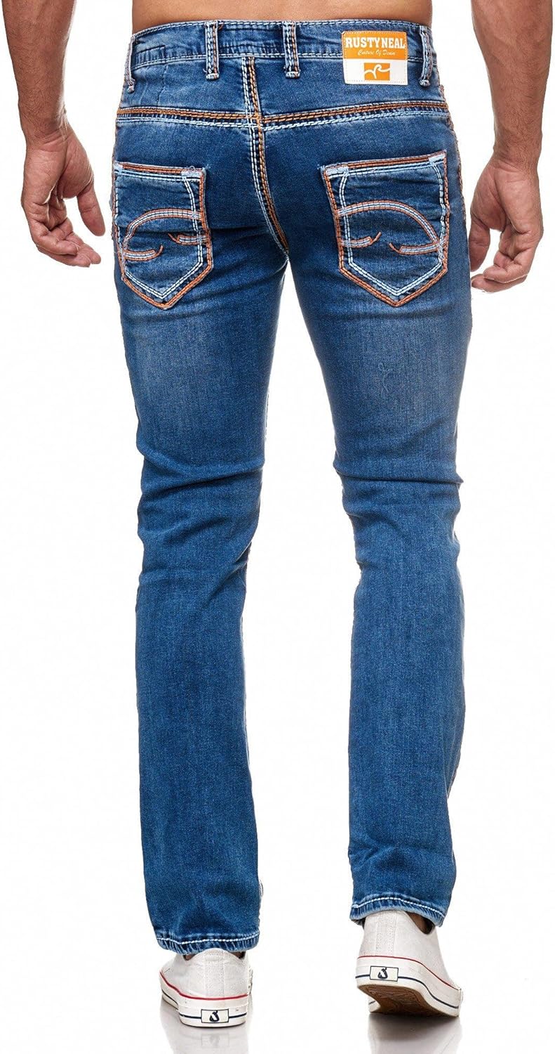 Herrenmode Reslad Herren Denim Jeans Dicke Kontrast Naht Used Look Style Pants Jeanshose Kleidung Accessoires Sticisce Sredisce Si