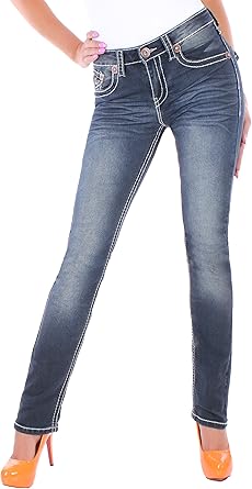 Damen Jeans Straight Leg Gerades Bein Dicke Nahte Naht 17 Farben No Grosse 42 Farbe Blau Outlet Center