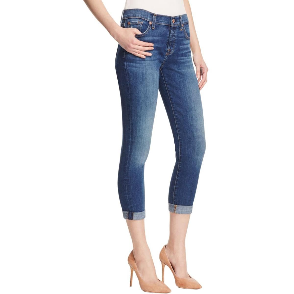 29 7 For All Mankind Womens Josefina Skinny Boyfriend Cuffed Jeans Blue Jeans Women