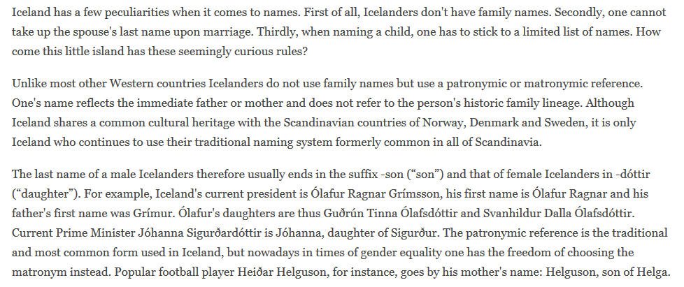 From Iceland So What S This Naming Law I Keep Hearing About