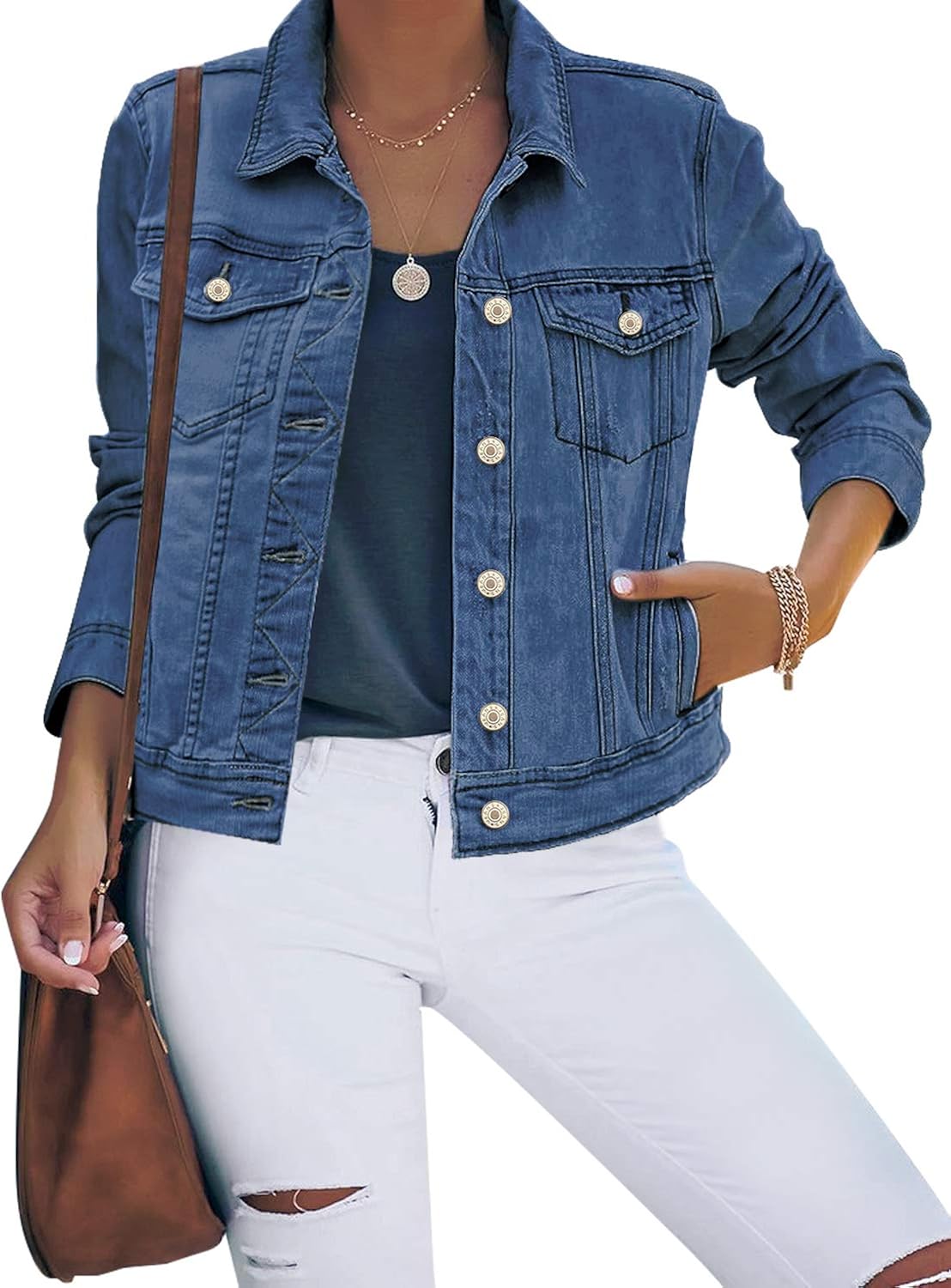 Jumpsuits, jackets, coats, and blazers in a variety of luxe fabrics showcase simple yet sophisticated details to provide the finishing touches Select women's designer clothing pieces include extra embellishments like lace sleeves, foil printing, and metal studs to elevate casual style to modern designer looks. Try a jacket in timeless monochrome or go for a stylish pattern for a maximalist flair Soft pastel pieces are perfect for warmer weather to wear with a full skirt or to smarten up a pair of skinny jeans Why not pick out a jacket in an elegant tweed for a subtly refined finish?. LookbookStore Womens Basic Long Sleeves Button Down Fitted Denim Jean Jackets 44 out of 5 stars 2 $2199 $3999 #16 Oversized Jean Jacket Women Vintage Washed Boyfriend Denim Jacket Classic Loose Jean Trucker Jacket 703 43 out of 5 stars 176 $2799 $4999 #31.