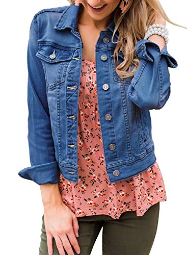 Luvamia Women S Basic Button Down Stretch Fitted Long Sleeves Denim Jean Jacket At Amazon Women S Coats Shop