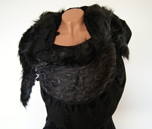 Tolles Dreieck Tuch Schal Mit Fell Und Spitzenbesatz 3 Lagig Schwarz Ebay