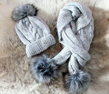 Damen Xxl Schal Mit Strickmutze Wintermutze Gefuttert Fell Bommel 2er Set New Ebay