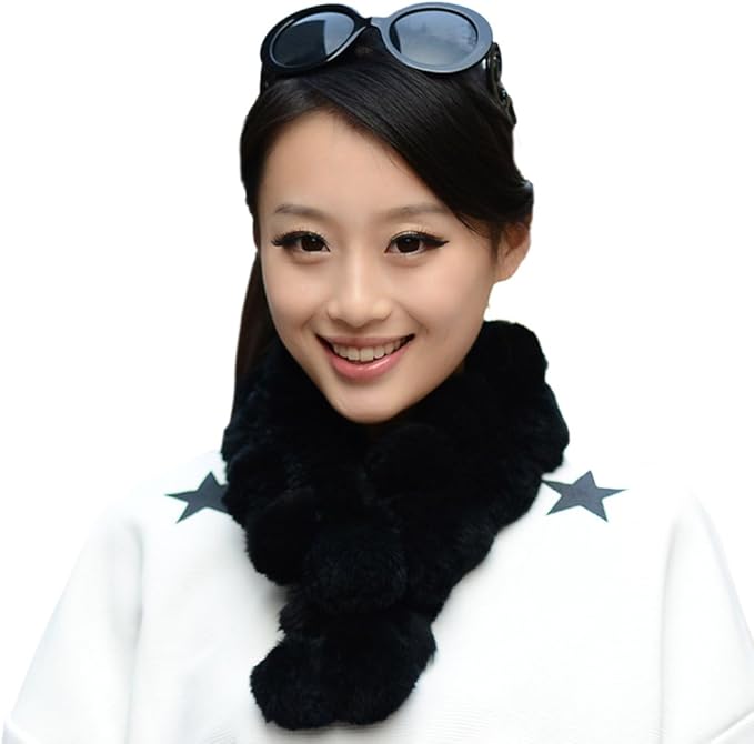 Ursfur Damen Weiche Rex Kaninchen Fell Schal Mit Pelz Bommel Halstuch Pelzkragen 25 5 Inches Long By 4 Inches Wide Black Amazon De Bekleidung