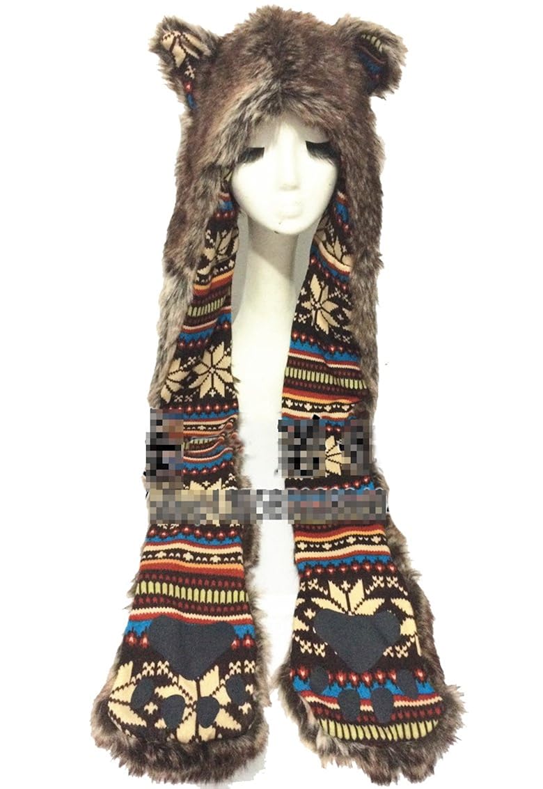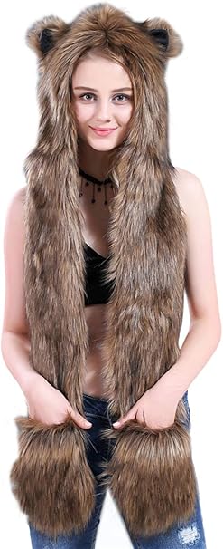 Aivtalk Plusch Schals Kunstliches Fell Tiere Mutze Schal Mit Ohrenschutz Handschuhe Winter Warm Fellmutze 3 In 1 Kapuze Cosplay Party Kostume Unisex Kapuzenschal Braun Amazon De Bekleidung