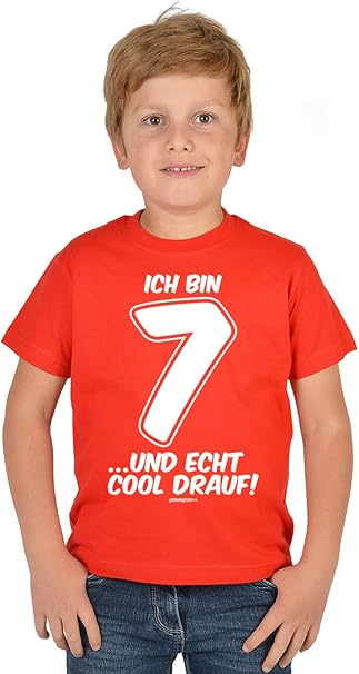 Kinder T Shirt Jungen 7 Geburtstag Kindergeburtstag Geschenk 7 Jahre Alt Kindershirt Ich Bin 7 Und Echt Cool Drauf 7 Geburtstagsgeschenk Buben Kind Cooler Spruch Bedruckt In Rot Amazon De Bekleidung