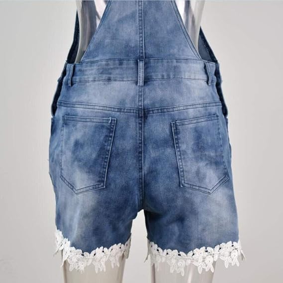 Hellblau Taschen Destroyed Zerrissenes Beilaufige Jeans Overall Kurze Denim Latzhose Damen Mode Shorts Unterteile