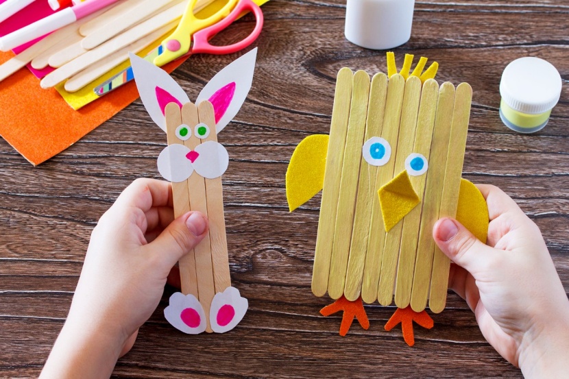Hahnchen Aus Holzstabchen Selber Machen Basteln Mit Kindern Lustige Und Kreative Ideen Z Basteln Mit Eisstielen Osterhasen Basteln Kinder Basteln Mit Kindern