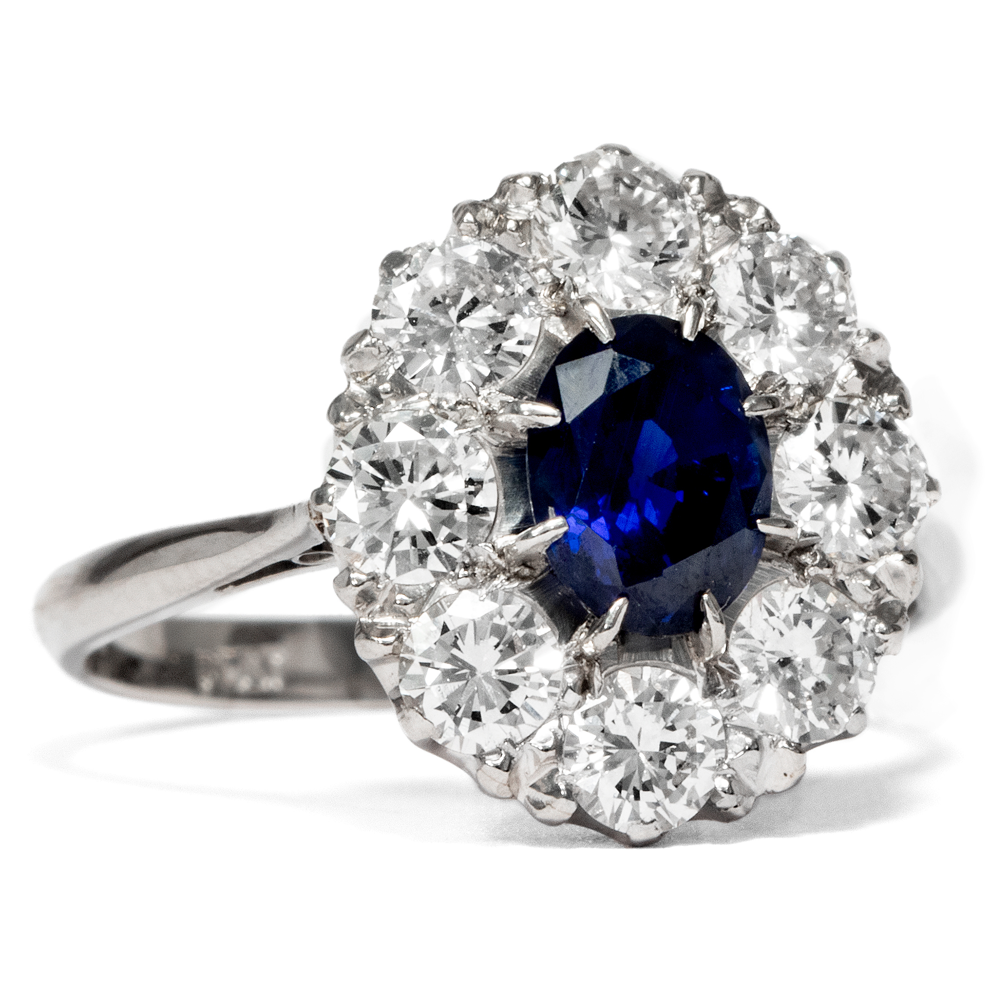 Plotzlich Prinzessin Funkelnder Vintage Saphir Ring Mit Entourage Aus Brillanten In Platin Um 1980 Hofer Antikschmuck
