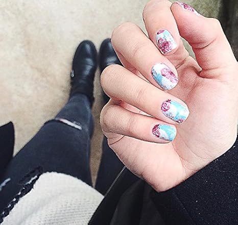 Miss Sophie S Nagelfolie Pastell Blossom Blumen Blau Weiss Rot Selbstklebende Nail Wraps Amazon De Beauty