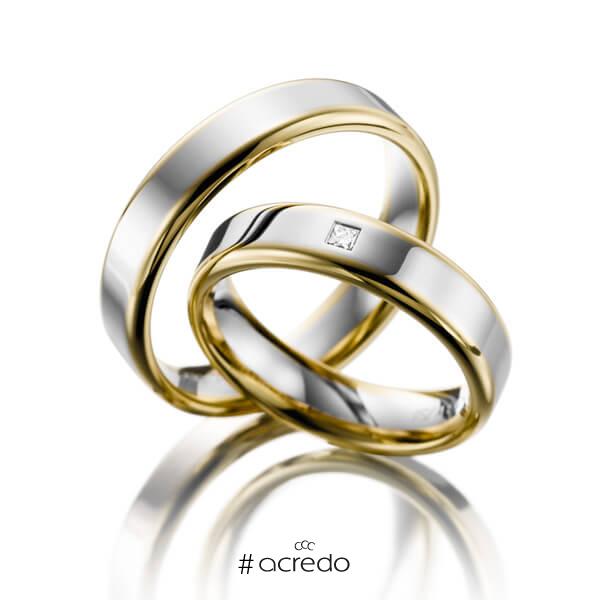 Paar Bicolor Trauringe Eheringe In Gelbgold 585 Weissgold 585 Mit Zus 0 03 Ct Prinzess Diamant Tw Si Von Acredo S 1066 1