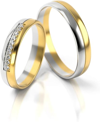 Jc Trauringe Gold 585 Paarpreis Bicolor Gelbgold Weissgold I Eheringe Breit 4 Mm I Partnerringe Mit Gravur In Edler Schatulle I 2 Hochzeitsringe Herrenring Ohne Damenring Mit Steinen I Pl318 Amazon De Schmuck