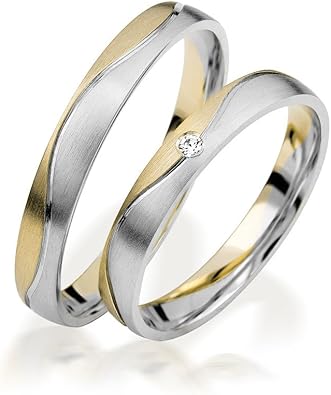 Paar Bicolor Trauringe Eheringe In Weissgold 585 Gelbgold 585 Mit Zus 0 06 Ct Brillant Tw Si Von Acredo A 3022 1
