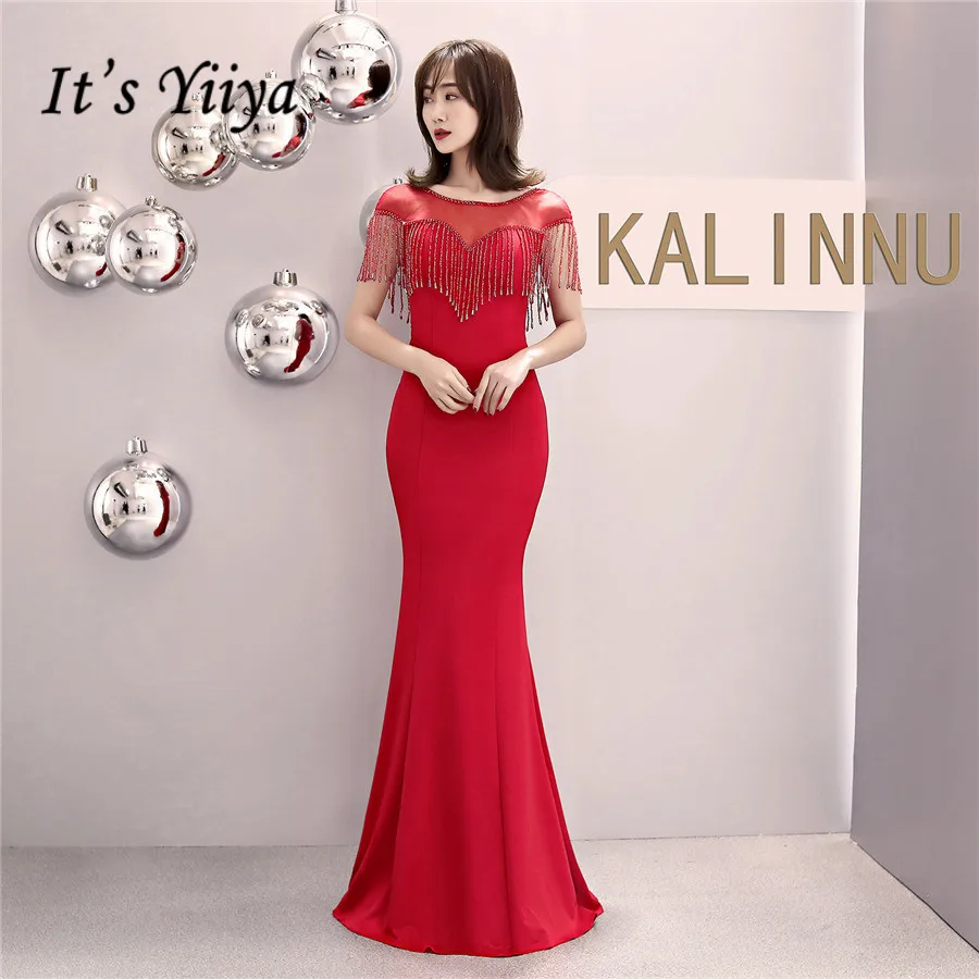 Tassel Evening Dress It S Yiiya Dx309 Floor Length Mermaid Short Sleeve Evening Dress Plus Size Illusion Backless Abendkleider Evening Dresses Aliexpress