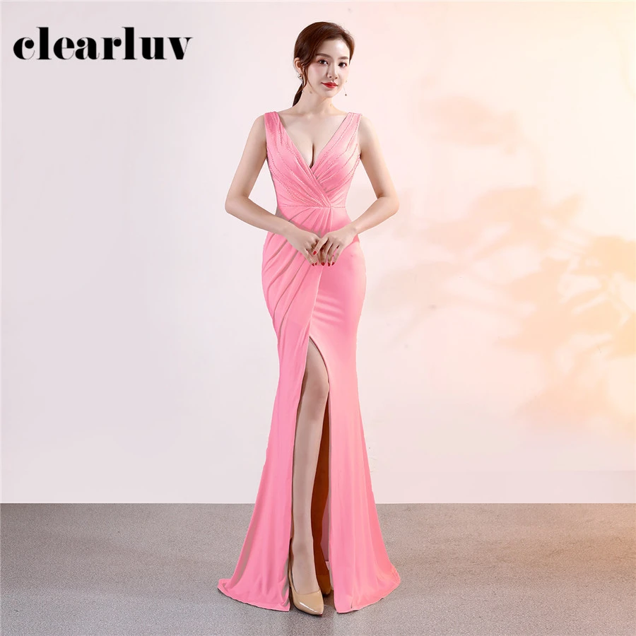 Abendkleider Lang Peach Pink Plus Size Pleat Prom Gown Dx379 1 Sexy Split Formal Party Gowns Sleeveless Mermaid Evening Dress Evening Dresses Aliexpress
