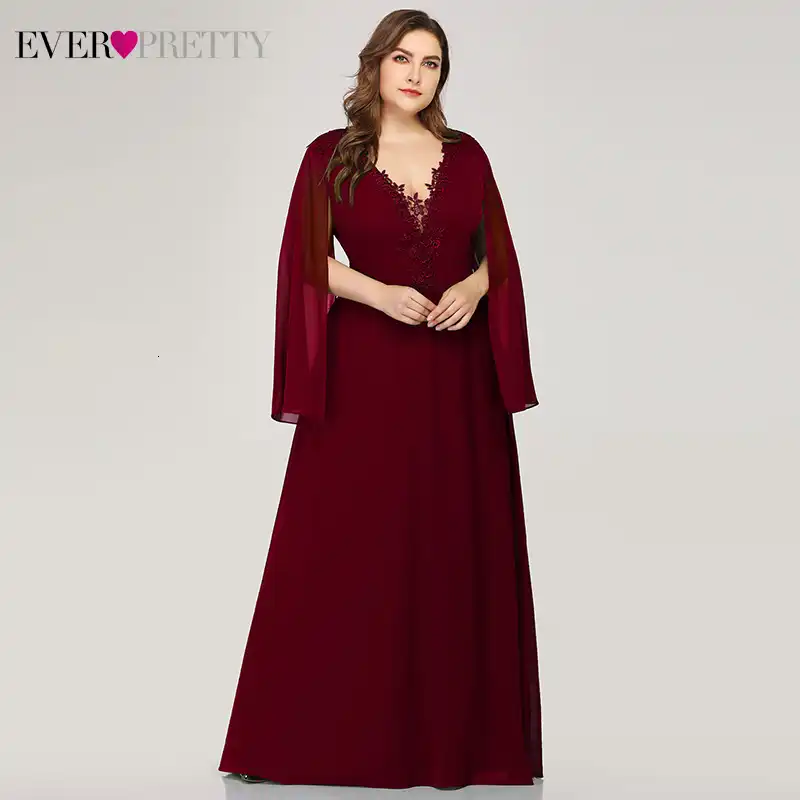 Ever Pretty Burgundy Elegant Plus Size Ruffle Sleeve V Neck A Line Abendkleider Elegant Cocktail Evening Party Dresses Prom Dress Wish