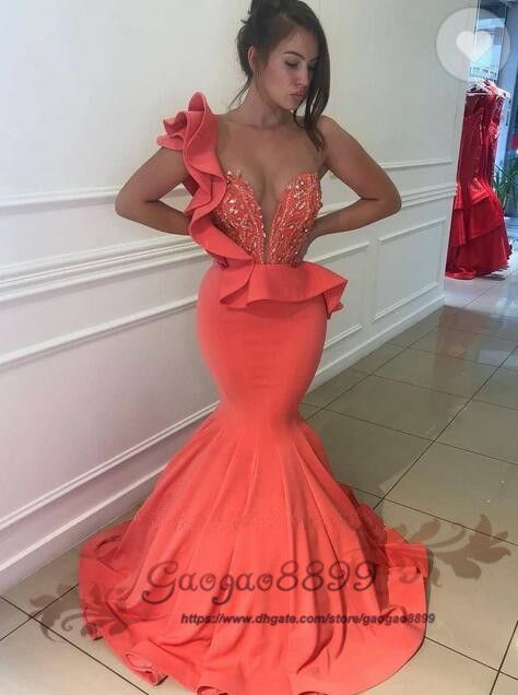 19 New Orange Mermaid Prom Dresses Abendkleider Sweep Train Sexy With Zipper Custom Made Ruched Jewel Neck Beaded Crystal Plus Size Prom Dresses Cheap Black Prom Dresses From Gaogao89 128 69 Dhgate Com