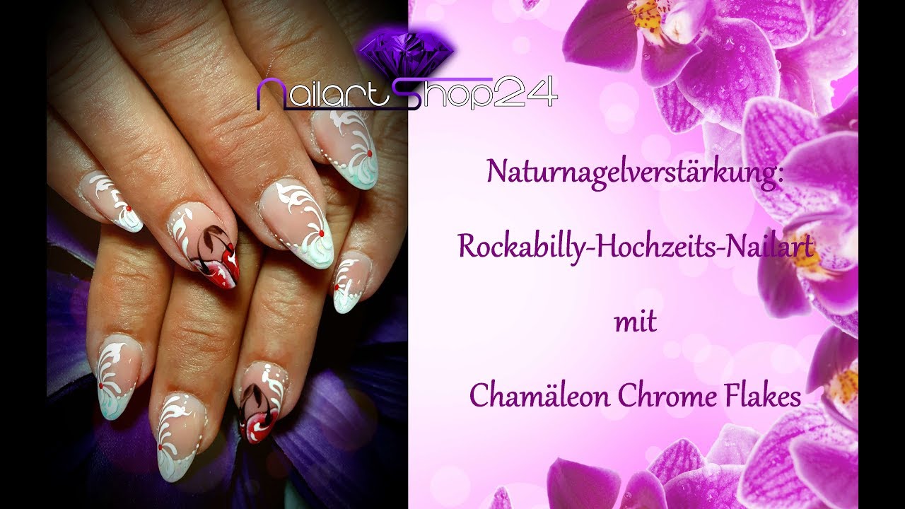 Naturnagelverstarkung Rockabilly Hochzeits Nailart Chamaleon Chrome Flakes Youtube