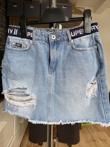 Sublevel Damen Mini Jeansrock Stretch Kurz Im Used Look Mit Destroyed Parts Blue M Jeansrock Jeans Rock Frauenshorts
