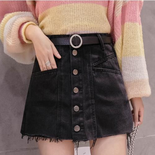 Kurzer Jeansrock Mit Gurtel Und Knopfen Black Denim
