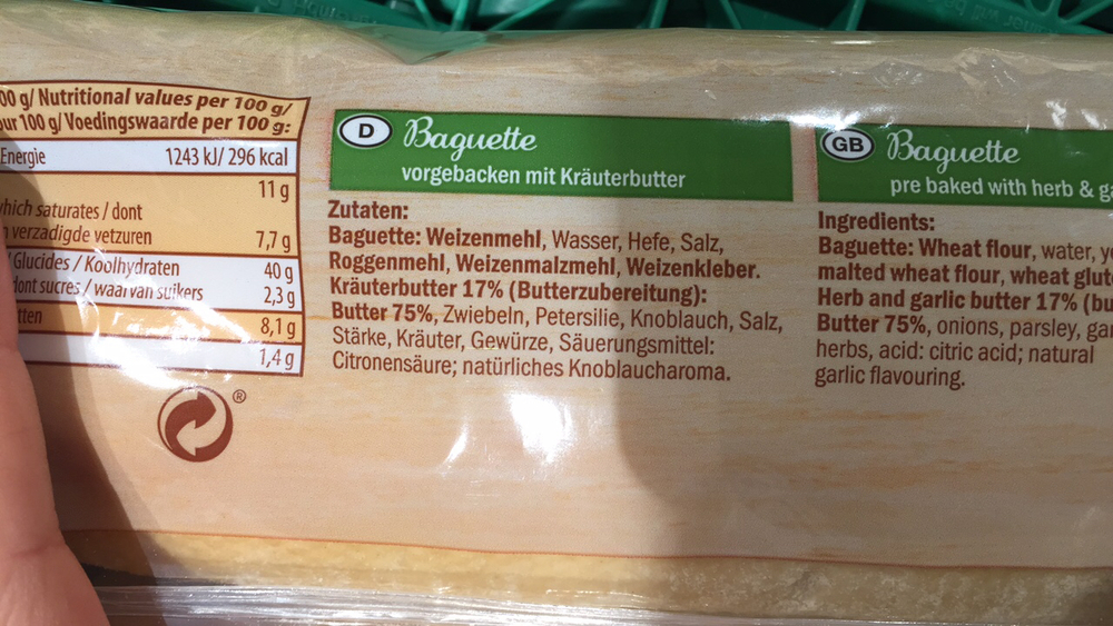 A v dalších více než 100 000 potravinách Uložte si Kräuterbutter baguette Ja!. The ingredients in french baguette are very simple, flour, salt, yeast and water The only thing I changed on this recipe, is the flour, I used bread flour instead I wanted to experiment with it, and see what the difference in the bread will be. TiP Kräuterbutter Baguette 175 g der Marke TiP von real, Handels GmbH ist der Kategorie Baguettes zugeordnet und wurde zuletzt bearbeitet am um 1651 Uhr TiP Kräuterbutter Baguette Kalorien (kcal) und Inhaltsstoffe dasistdrin.