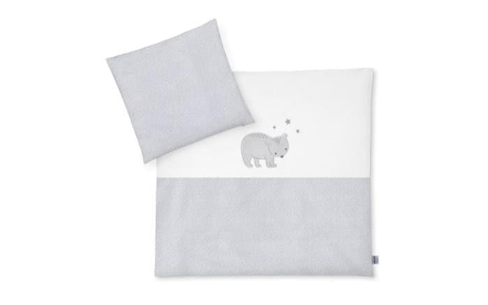 Wende Bettwasche Sleeping Little Bear 100x135 40x60 In Weiss Grau