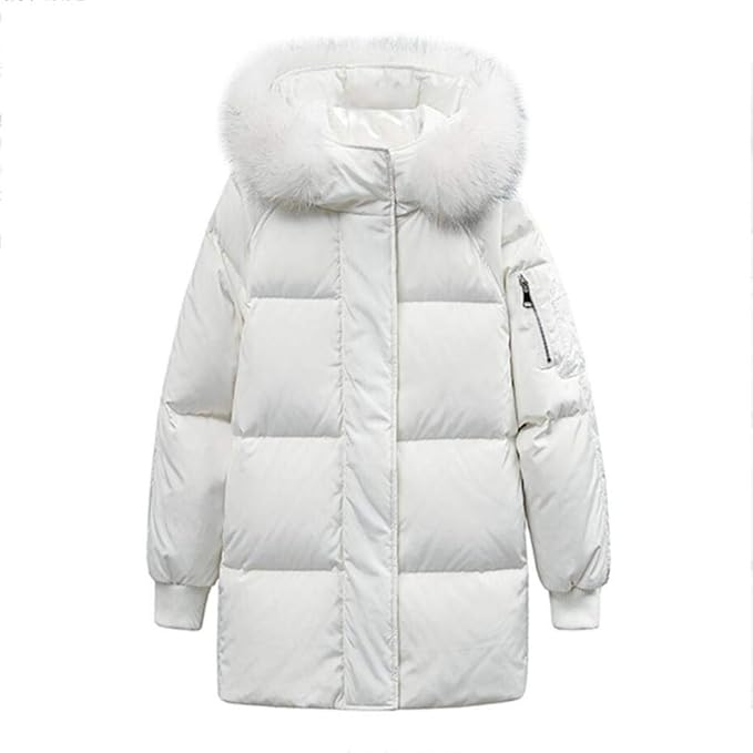 Lqyrf Winter Damen Langarm Reissverschluss Weisse Daunenjacke Lange Abschnitt Grosse Pelzkragen Dicke Lose 76 80 Weisse Ente Daunen Polyester Faser Frauen Jacke L Amazon De Sport Freizeit