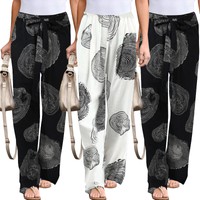 Hosen Damen Blume Palazzo Hosen Hohe Taille Weites Bein Haremshose Pumphose Aladinhose Damenmode Kleidung Accessoires Damenmode