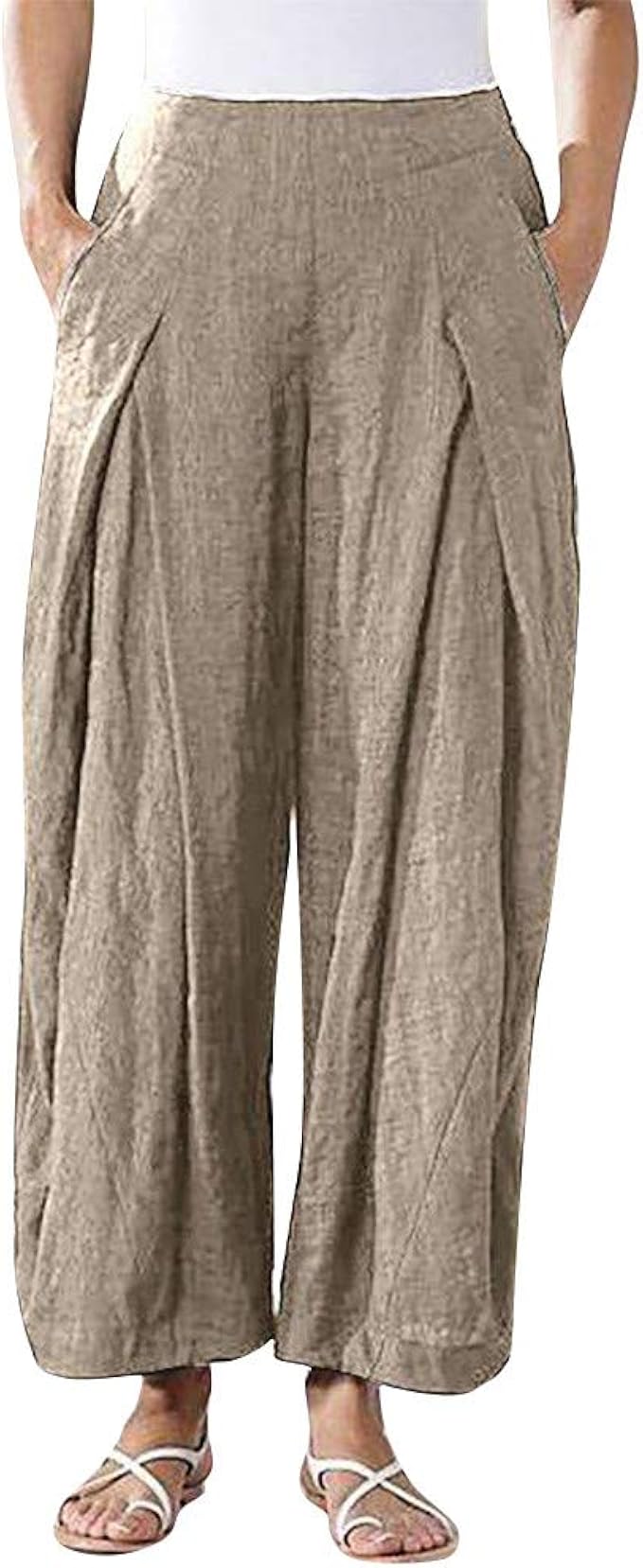 Damen Mode Baumwoll Leinen Beilaufig Bequem Weites Bein Lose Langes Haremhosen Mi Tiles Com