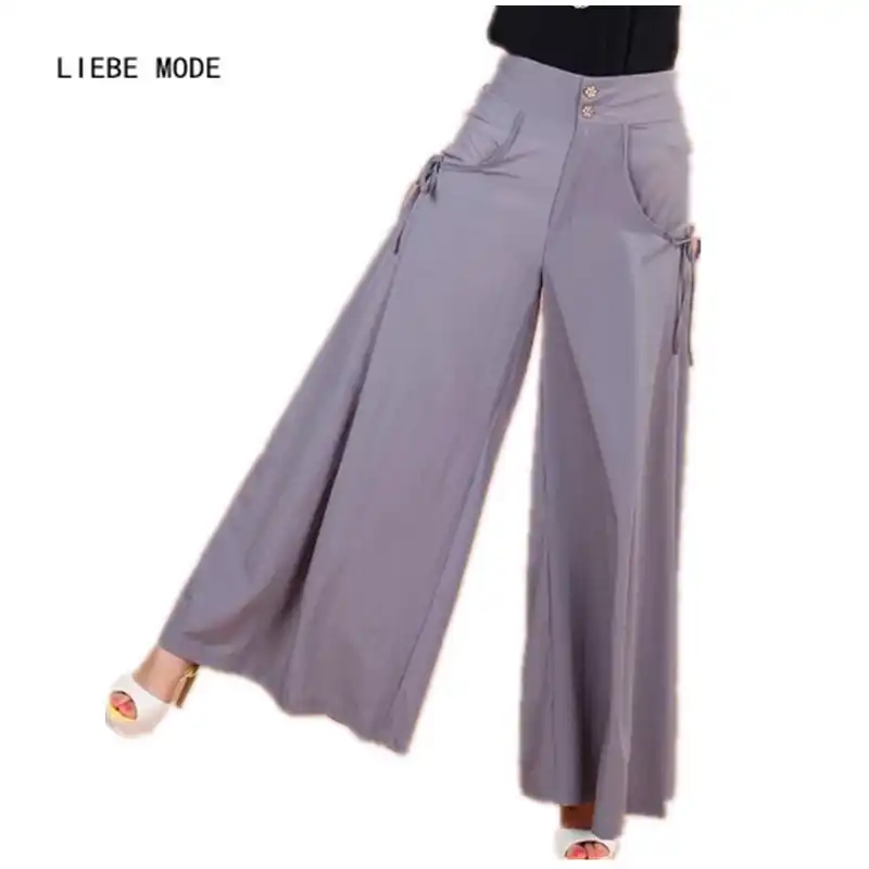 Sommer Culottes Breite Bein Hosen Frauen Grau Weiss Braun Rock Palazzo Hosen Frau Plus Grosse Capris Hohe Taille Lose Ausgestelltes Hosen Flared Trousers Wide Leg Pantspalazzo Pants Aliexpress