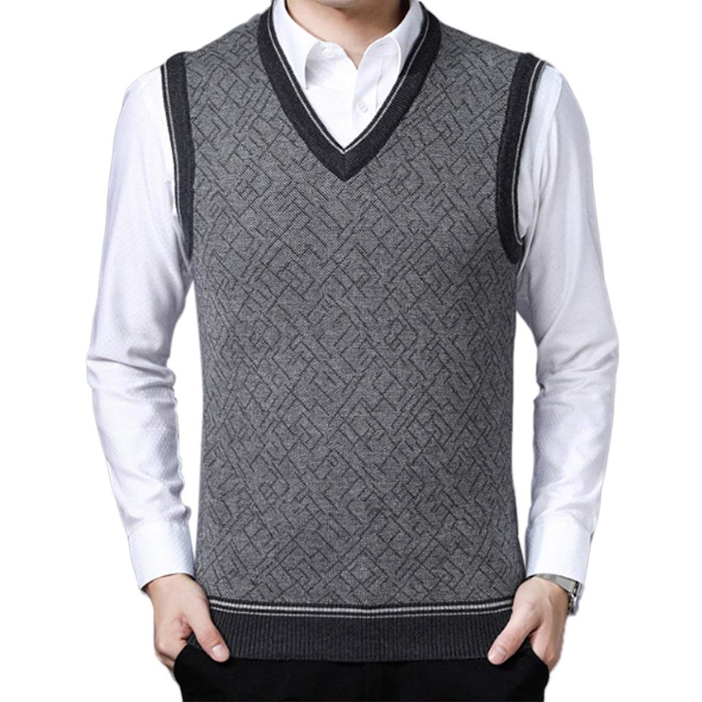 Qjkai Herren Winter Wolle Armel Pullunder Beilaufige Gentleman Geschafts Mit V Ausschnitt Strick Weste Weiche Strickpullover Tank Tops Color A Size L