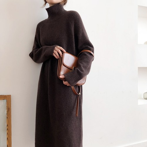 Damenmode Kaschmir Strickkleider Rollkragen Warm Winter Lang Sweater Kleider Neu Ebay