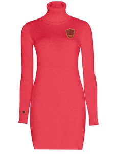 Preppy Scarlet 100 Kaschmir Rollkragen Kleid Rot Mit Emblem Luxe Oh Dor Cashmere