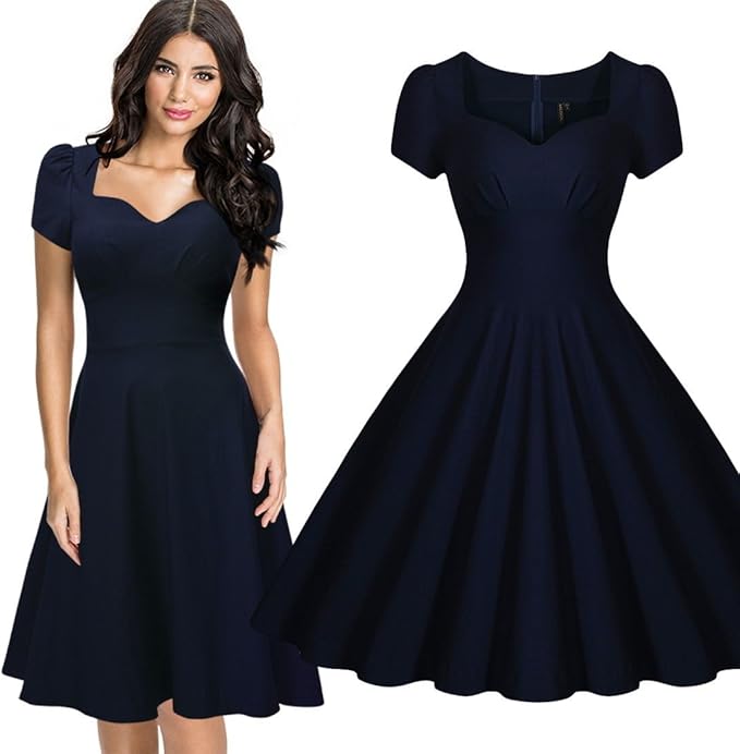 Ssitg Damen Vintage Kleid Abendkleid Stretch Cocktailkleid Partykleid Dunkelblau 36 46 Amazon De Bekleidung