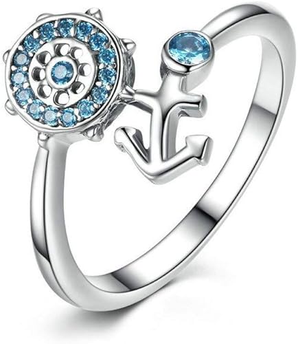 Amazon Com Fcsfsf Ring Damen 925 Sterling Silber Blauer Kristall Anker Und Helm Fingerring Damen Schmuck Verlobungsring Jewelry