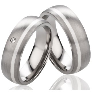 Verlobungsringe online kaufen bei THE JEWELLER Du planst Deiner Freundin einen Heiratsantrag zu machen und bist auf der Suche nach dem passenden Verlobungsring?. Verlobungsringe aus 925 Silber sind dabei ein Teil des Angebots in unserem Onlineshop für hochwertigem Schmuck, während in anderen Kategorien zahlreiche Schmuckhighlights auf neue Besitzer warten 925er Silber Verlobungsringe bilden gemeinsam mit Schmuckstücken aus Gold, Keramik, Wolfram oder Edelstahl das Angebot bei THE JEWELLER Wir bieten Dir zudem nicht nur rund um den Verlobungsring umfassenden Service, schnellen Versand und unkomplizierte Retouremöglichkeiten, sondern stehen bei. Ringmaterial 1 Titan Ringmaterial 2 925 Silber Ringbreite 6mm Ringstärke ca 2,2 mm Oberfläche Gebürstet Steinbesatz Diamant Steingröße Carat 0,01ct ca1,5mm Ø Farbe GH = Weiß Reinheit SI = Small Inclusion Innenfläche Bombiert für besten Tragekomfort Gravur Diamantgravur Menge 1 Paar (2 Ringe) Der Artikel wird mit Etui versendet.