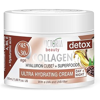 Mit der Zeit verliert die Haut an Elastizität, doch mit der richtigen Creme, können Collagen und andere wichtige Stoffe in der Haut wieder erhöht werden Die Folge ist eine jünger aussehendes Hautbild Anti Aging Cremes können zudem vorzeitige Hautalterung vorbeugen, wenn sie Antioxidantien – wie beispielsweise Vitamine – beinhalten. Was für ein Ziel visieren Sie nach dem Kauf mit Ihrem Collagen Gesichtscreme an?. Victoria Beauty Collagen Creme, straffende Gesichtscreme mit Hanföl und Matrixyl, Augencreme gegen Falten, dunkle Augenringe und Tränensäcke (1 x 50 ml) DETOX COLLAGEN CREME Unsere straffende Gesichtscreme versorgt Ihre Haut mit Kollagen, das verantwortlich für Ihre straffe, gesunde Haut ist.