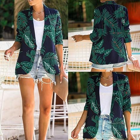Damen Blazer Langarmelig Mit Palmen Offener Amazon De Elektronik