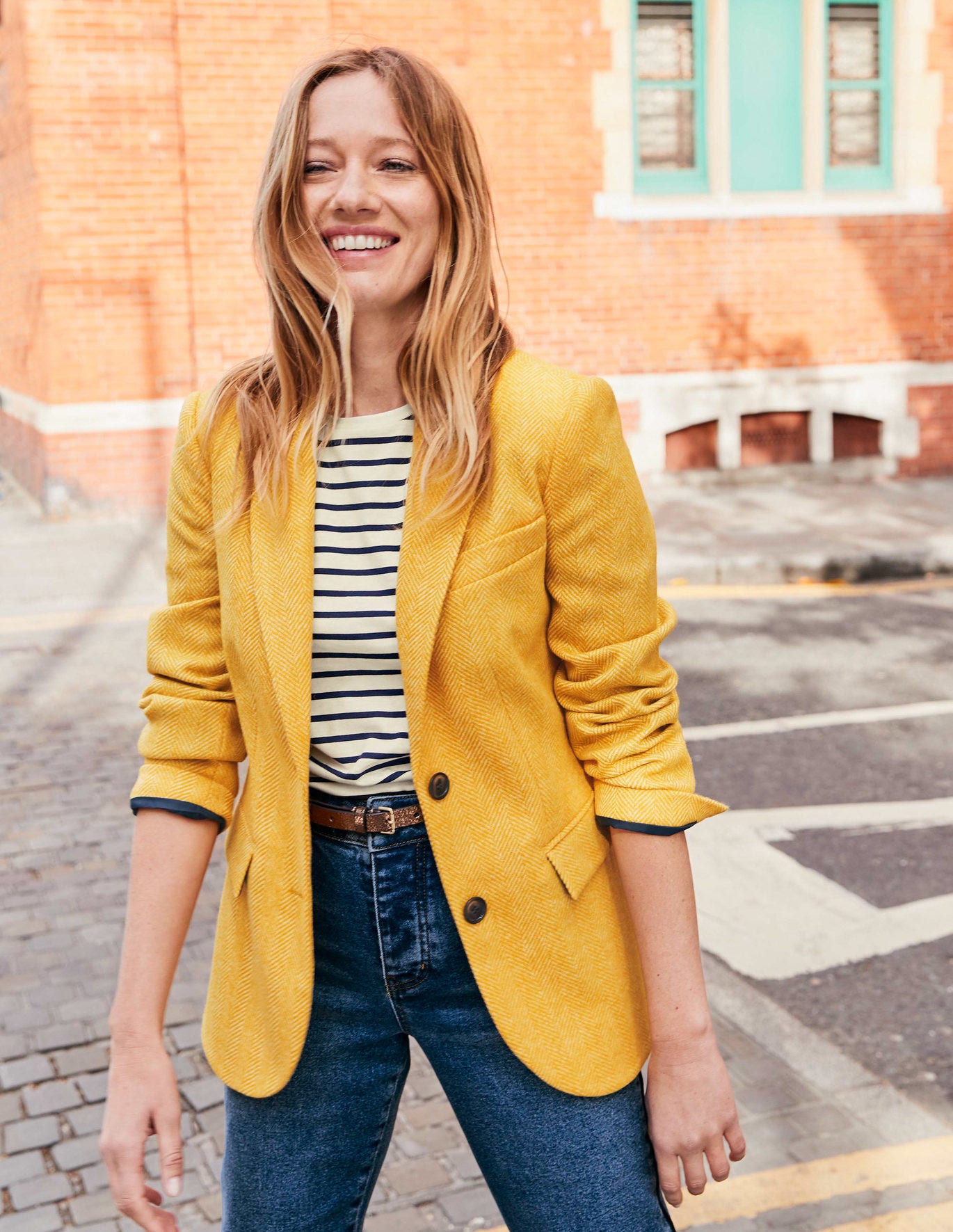 Wollstonecraft Tweed Blazer Gelb Fischgratmuster Boden De