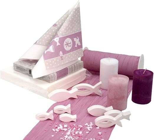 Unbekannt Tischdeko Kommunion Konfirmation Mauve Rosa Lila Beere Symbole Deko Set Personen Amazon De Kuche Haushalt