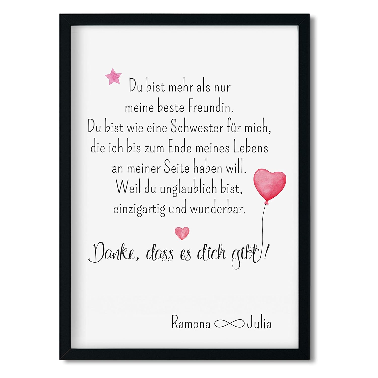 Kunstdruck Freundschaft Danke Personalisiert Geschenk Fur Beste Freundin Optional Mit Rahmen Bilder Kunstwerke Kunstdrucke