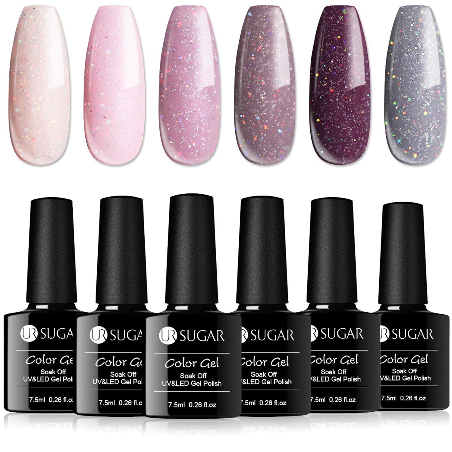 Ur Sugar 7 5ml Nude Farben Glitter Gel Nagellack Rosa Reihe Schimmer Perleffekt Mit Shining Glitter Shallow Nude 6 Farben Soakoff Im Harmony Kit Amazon De Beauty